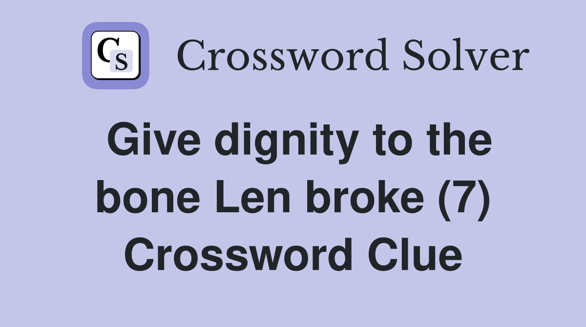 Give dignity to the bone Len broke (7) Crossword Clue Answers