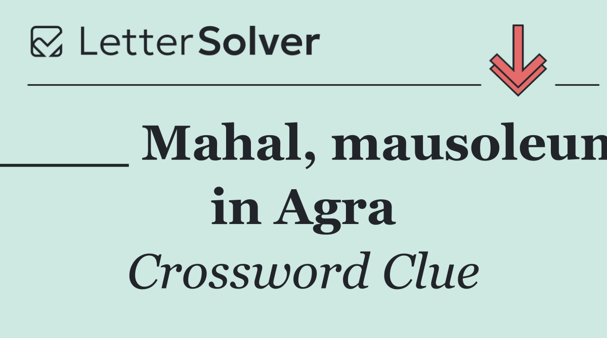 Mahal mausoleum in Agra Crossword Clue Answer July 30 2025