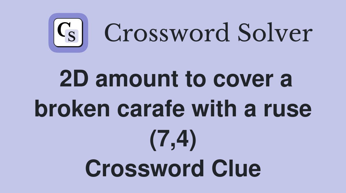 2D amount to cover a broken carafe with a ruse (7 4) Crossword Clue