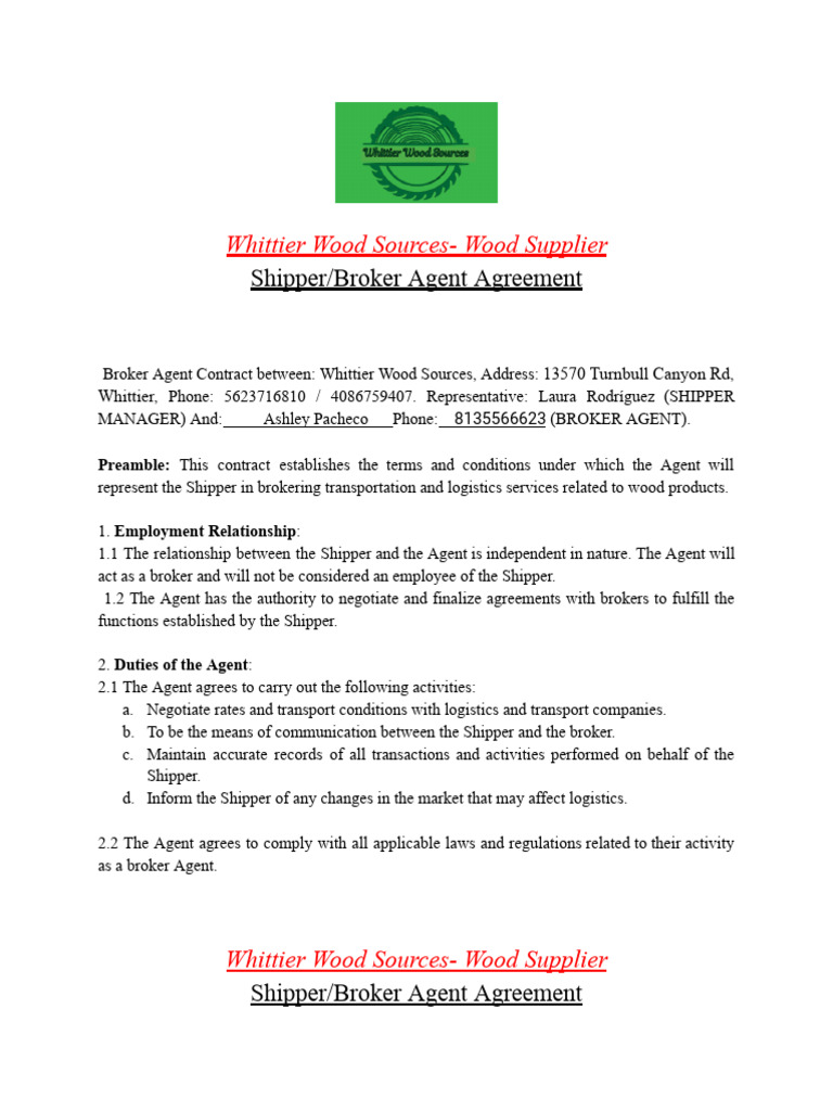 Shipper Broker Agent Agreement (1) PDF Cargo Logistics