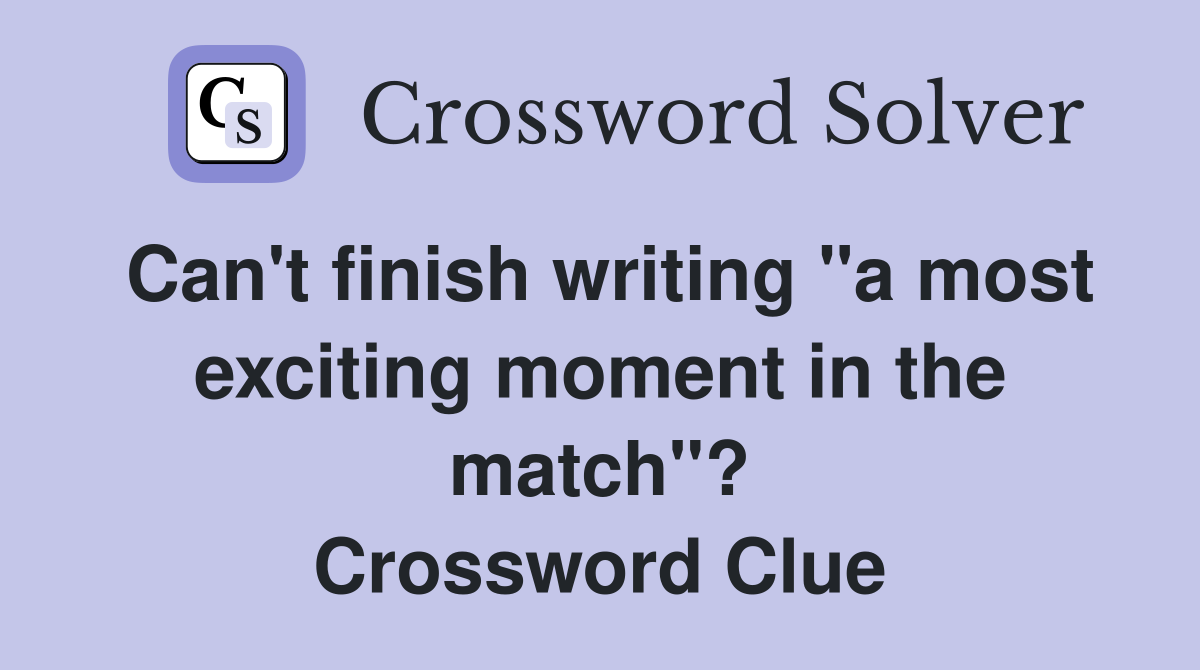 Can #39 t finish writing quot a most exciting moment in the match quot ? Crossword