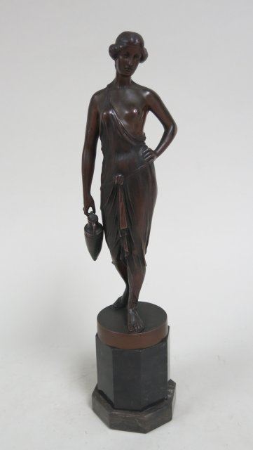 Antique French Art Deco Sculpture Statue of a Woman On Marble Plinth