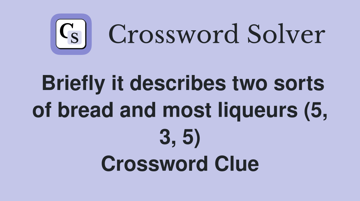 Briefly it describes two sorts of bread and most liqueurs (5 3 5