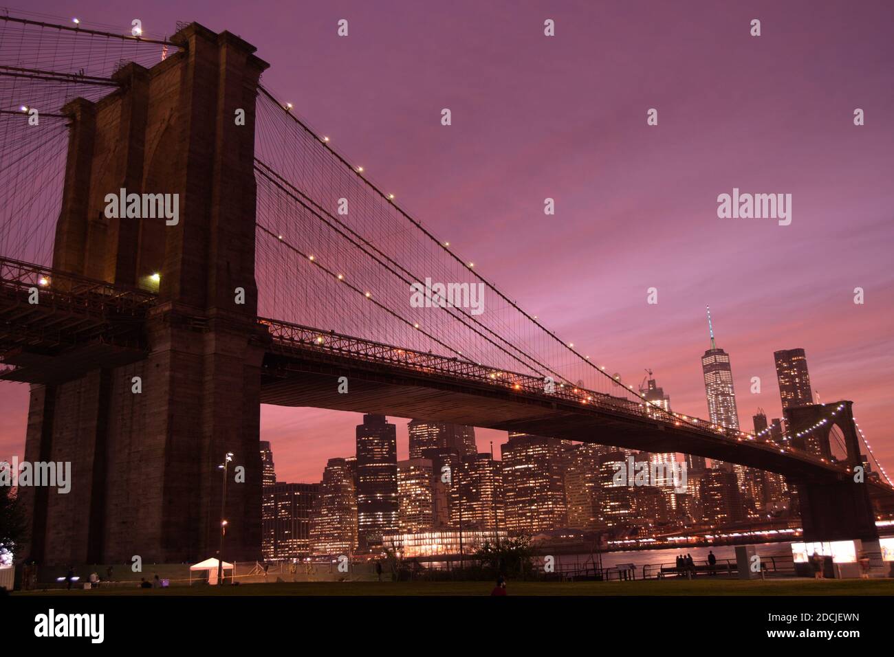 Brooklyn Bridge and Manhattan Skyline at sunset Stock Photo Alamy