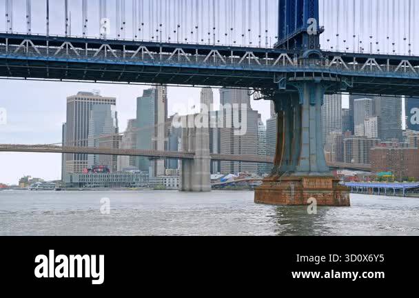 Brooklyn and Manhattan Bridges with New York skyline View of Brooklyn