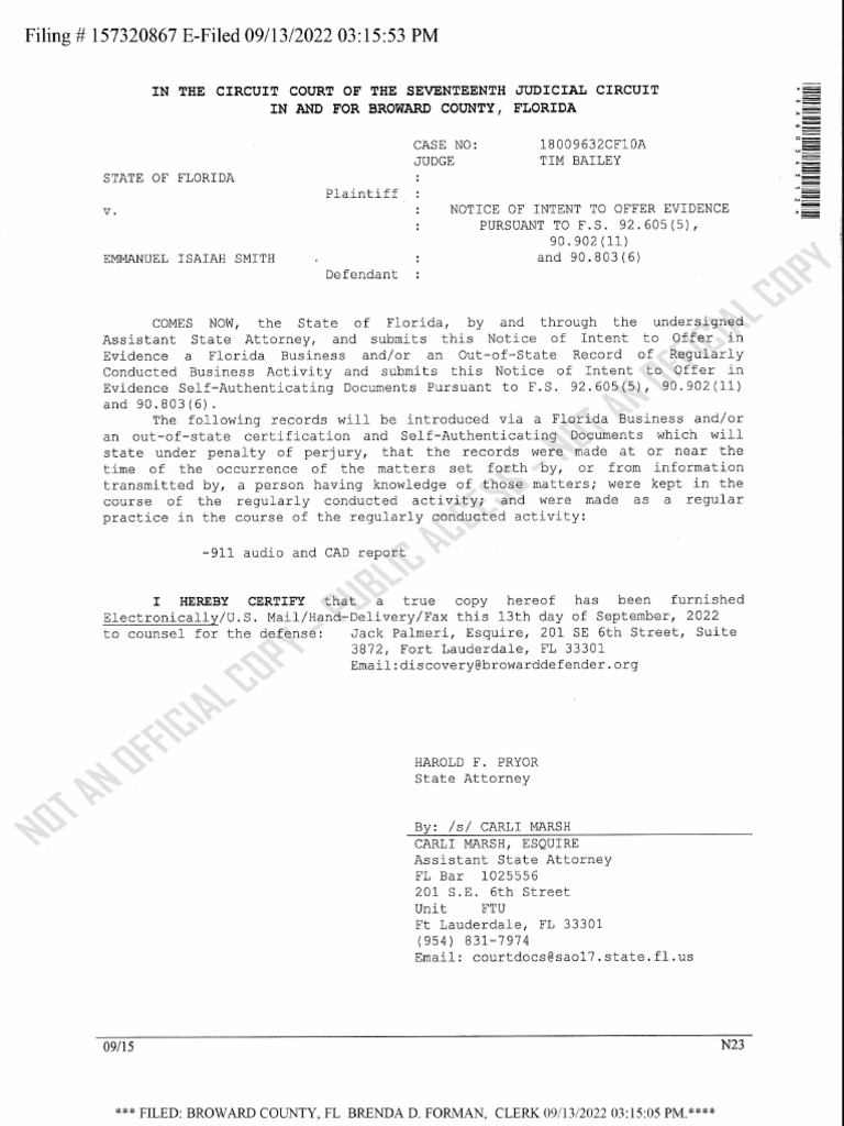 Emmanuel Isaiah Smith (Not Guilty) Broward County Court Case