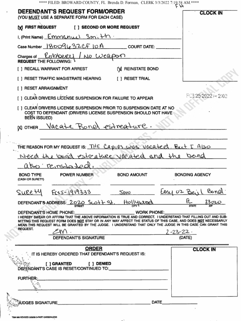 Emmanuel Isaiah Smith (Not Guilty) Broward County Court Case