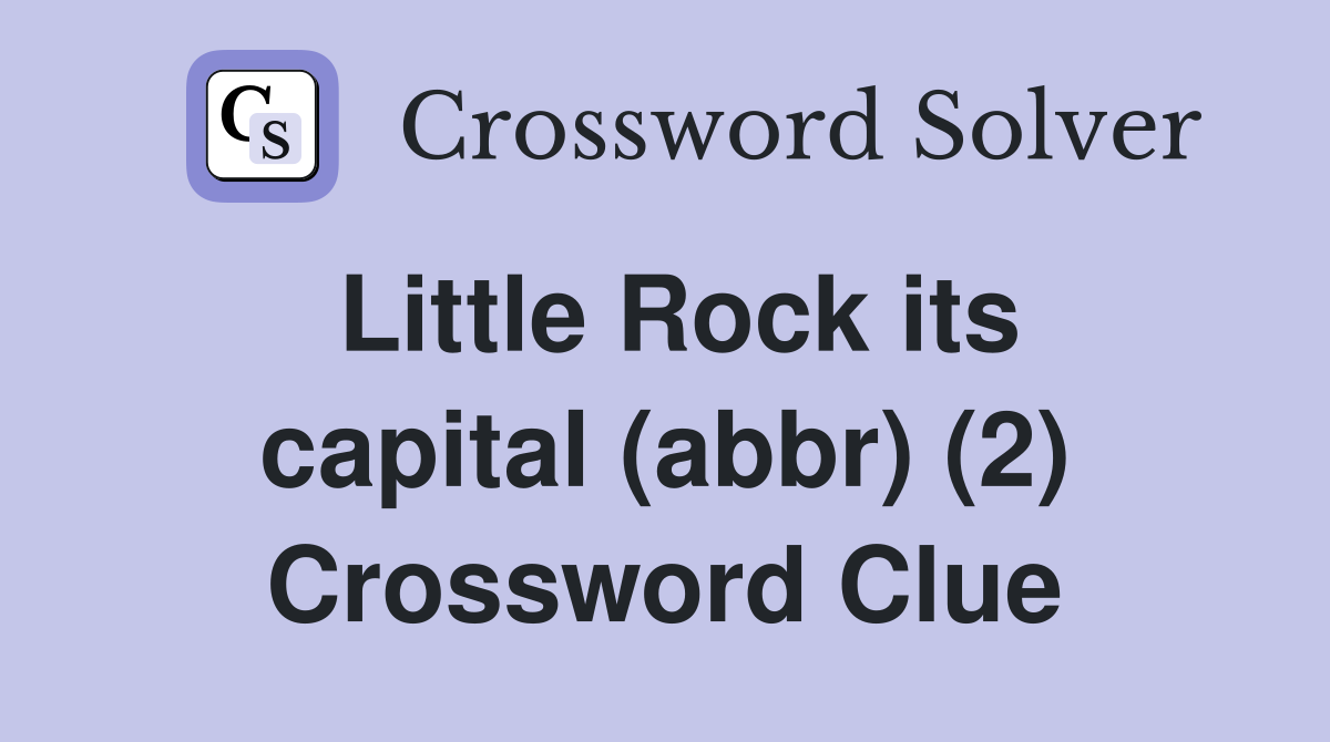 Little Rock its capital (abbr) (2) Crossword Clue Answers Crossword