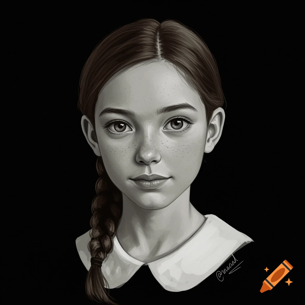 Headshot of a 12 year old girl in black and white with brownish tint on