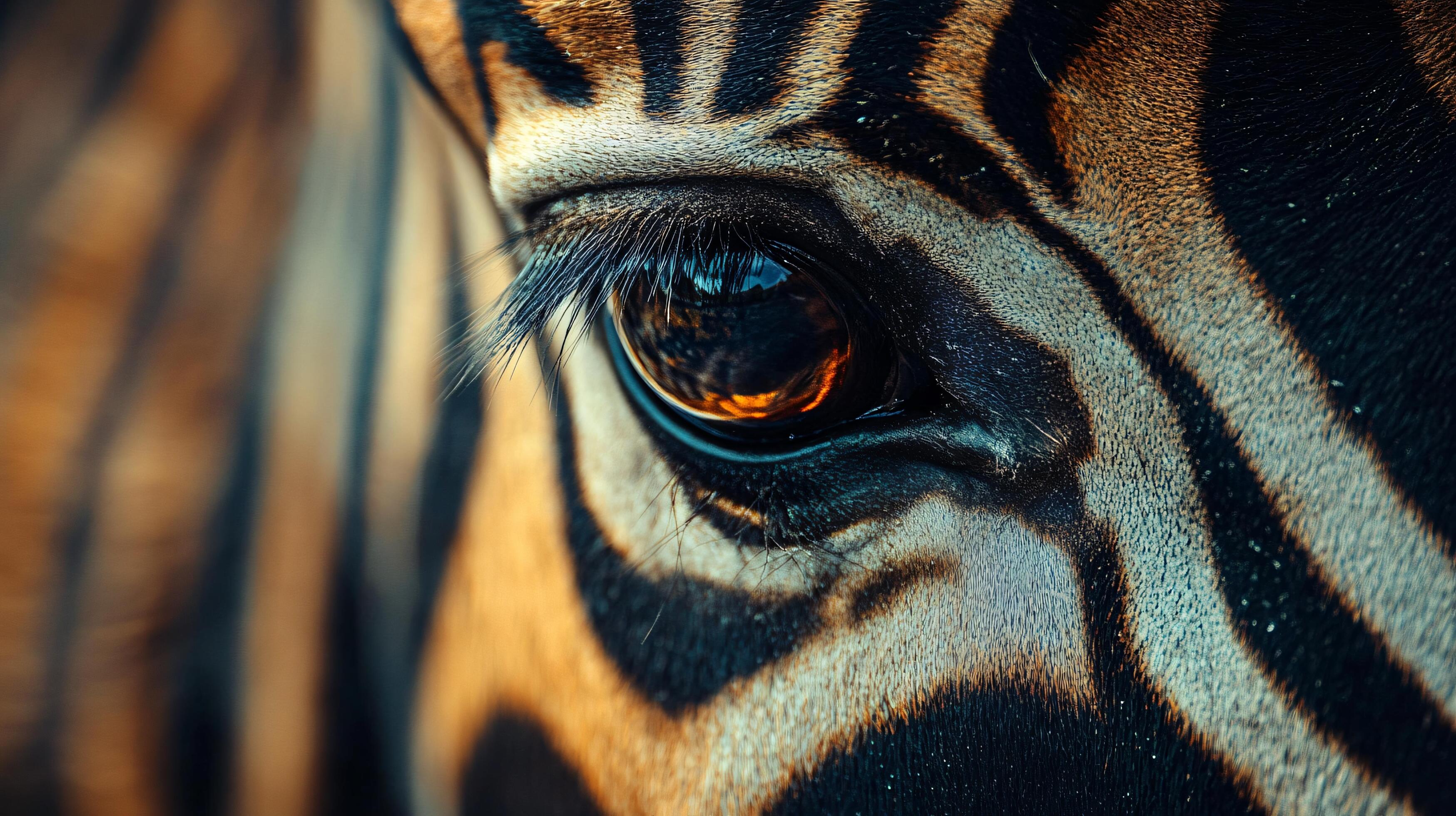 Zebra #39 s eye is shown in a close up The eye is surrounded by a pattern