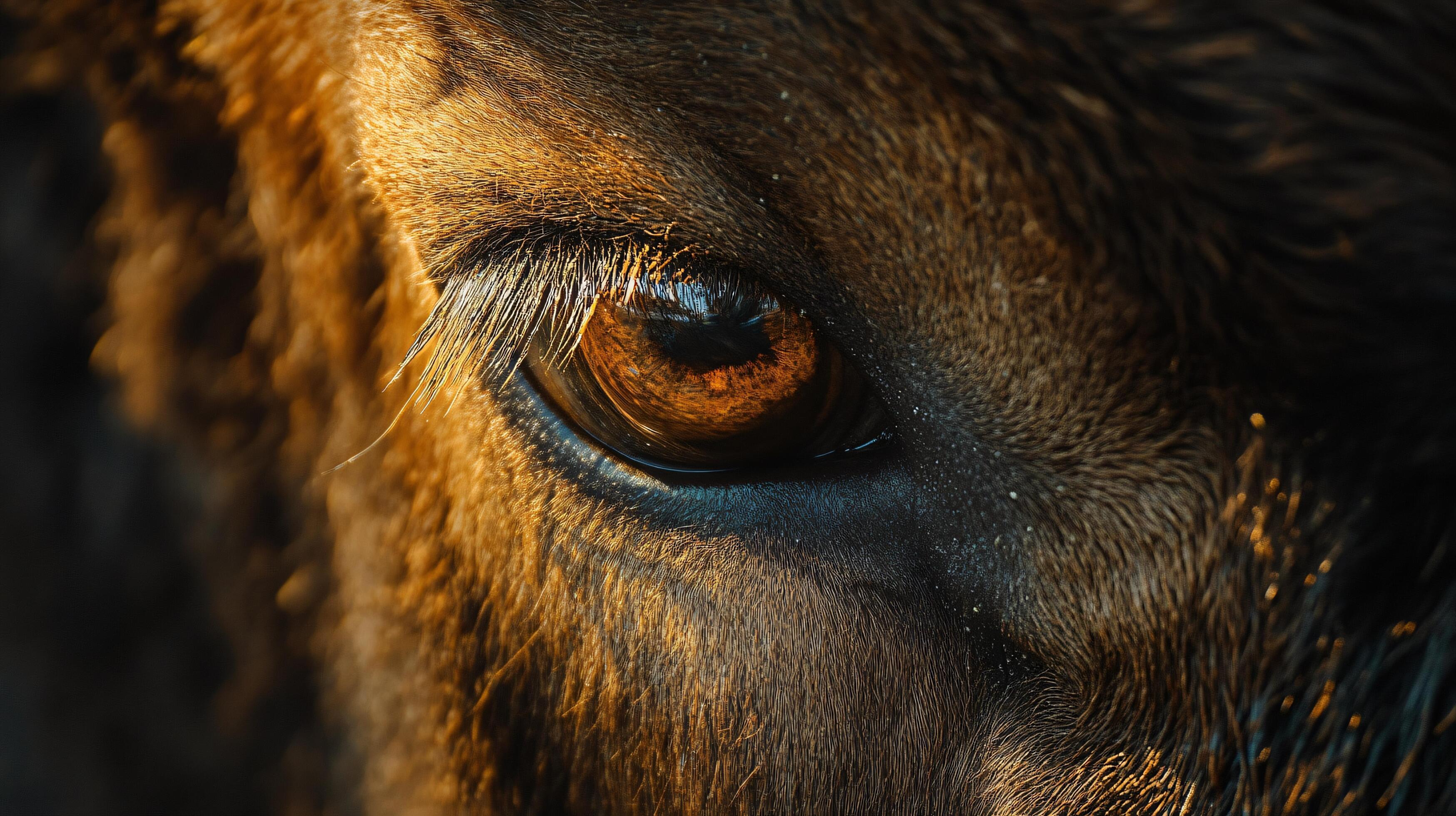 Close up of a deer #39 s eye with a brownish tint The eye is surrounded by