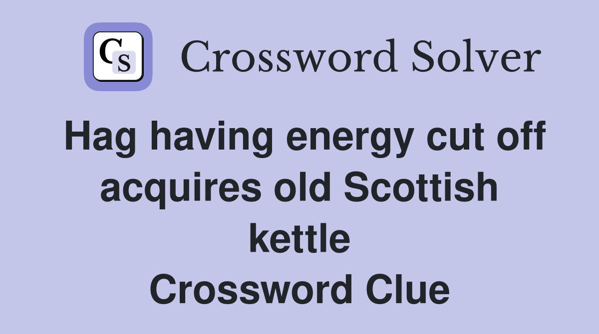 Hag having energy cut off acquires old Scottish kettle Crossword Clue