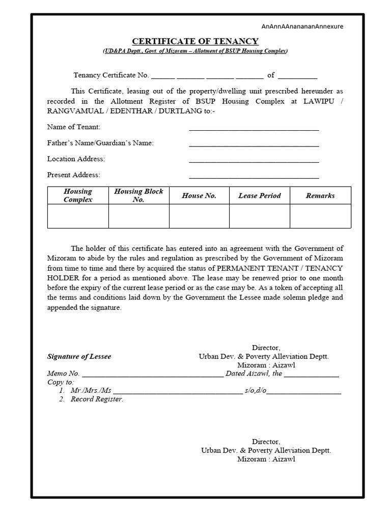 Certificate of Allotment BSU PDF Lease Leasehold Estate