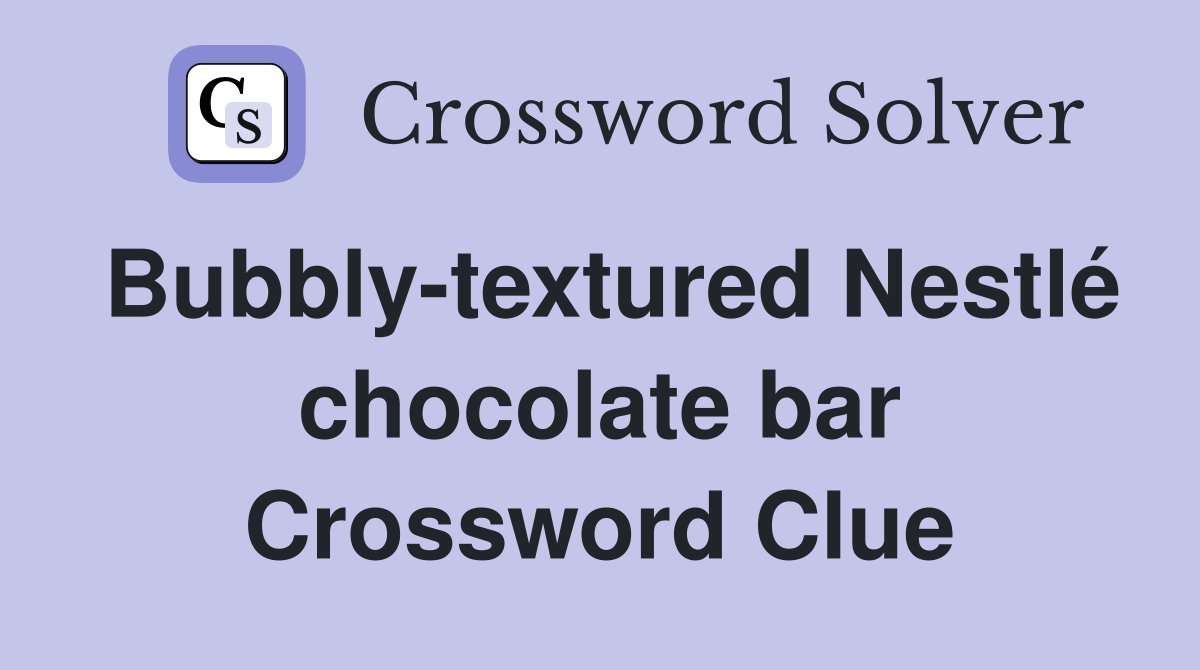 Bubbly textured Nestlé chocolate bar Crossword Clue Answers