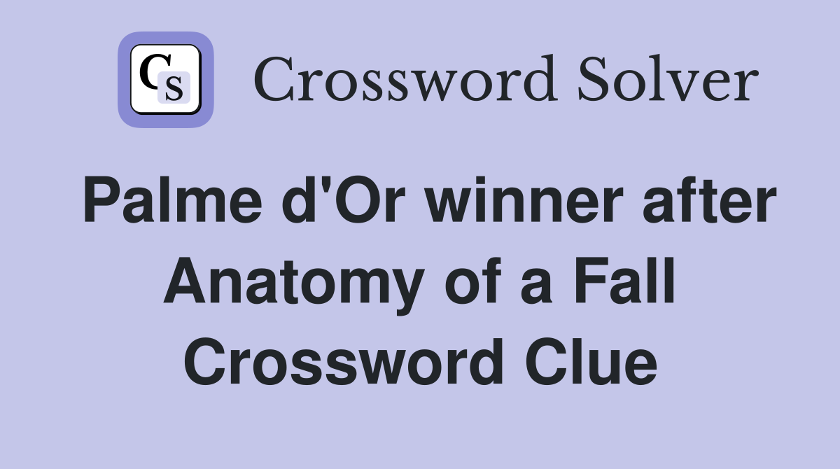 Palme d #39 Or winner after Anatomy of a Fall Crossword Clue Answers