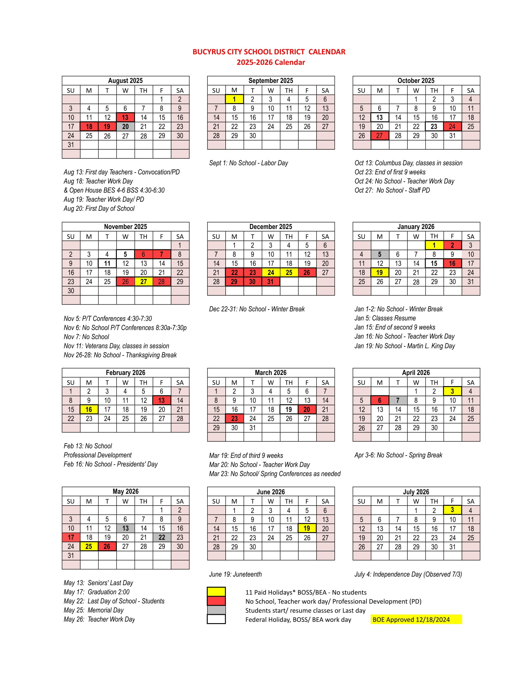 Bucyrus City Schools Calendar 25 26 Revised PDF EduCounty
