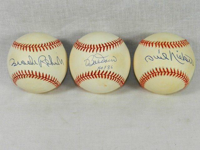 Bid Now: (3) Single Signed Hall of Fame Baseballs November 3 0122 10