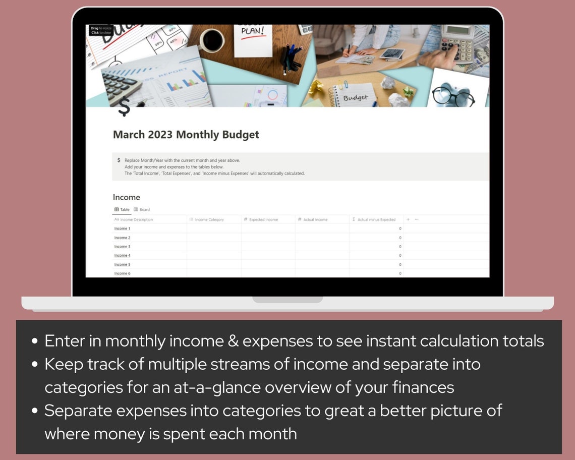 Monthly Budget Notion Template iPad Tablet Notion Template PC MAC
