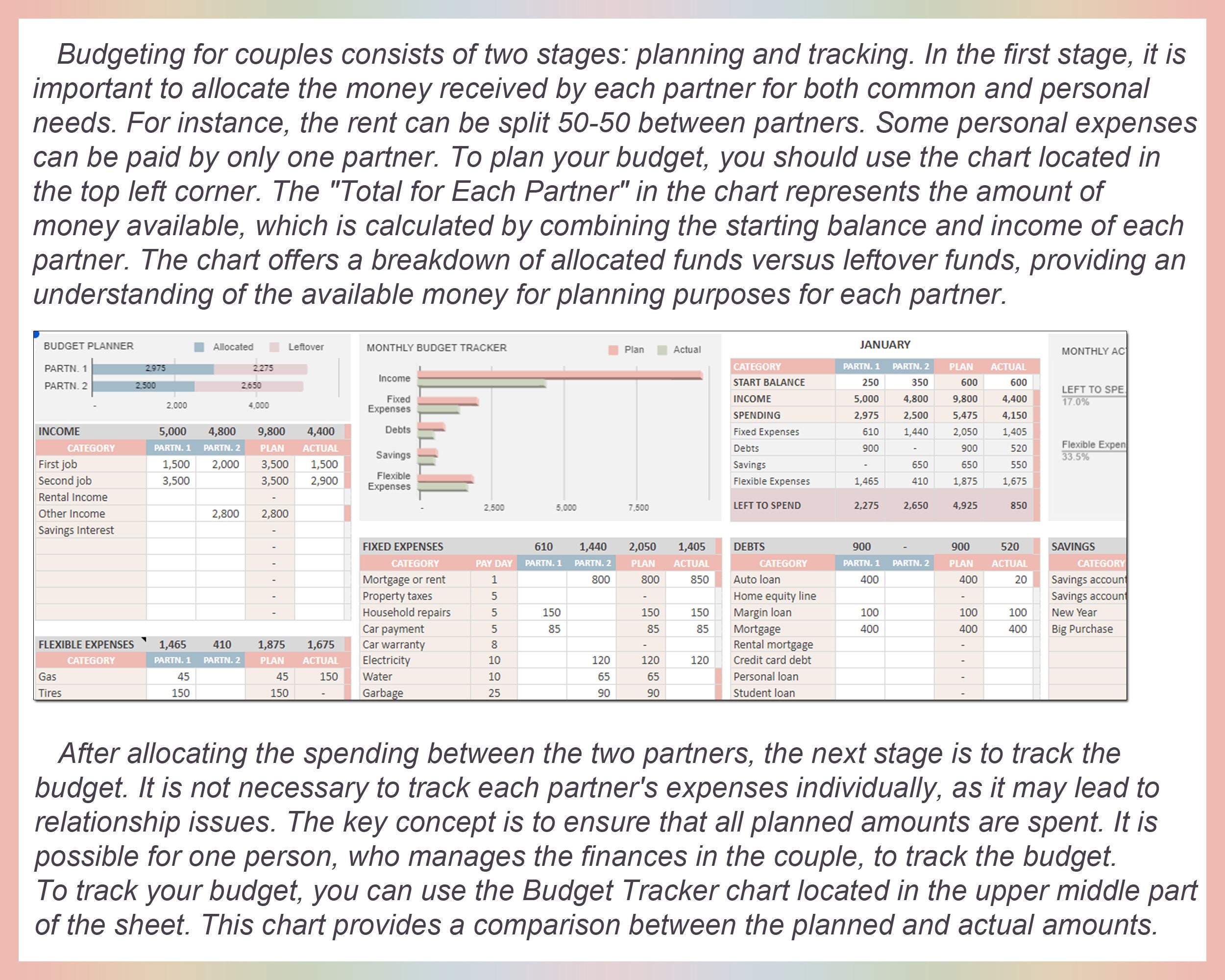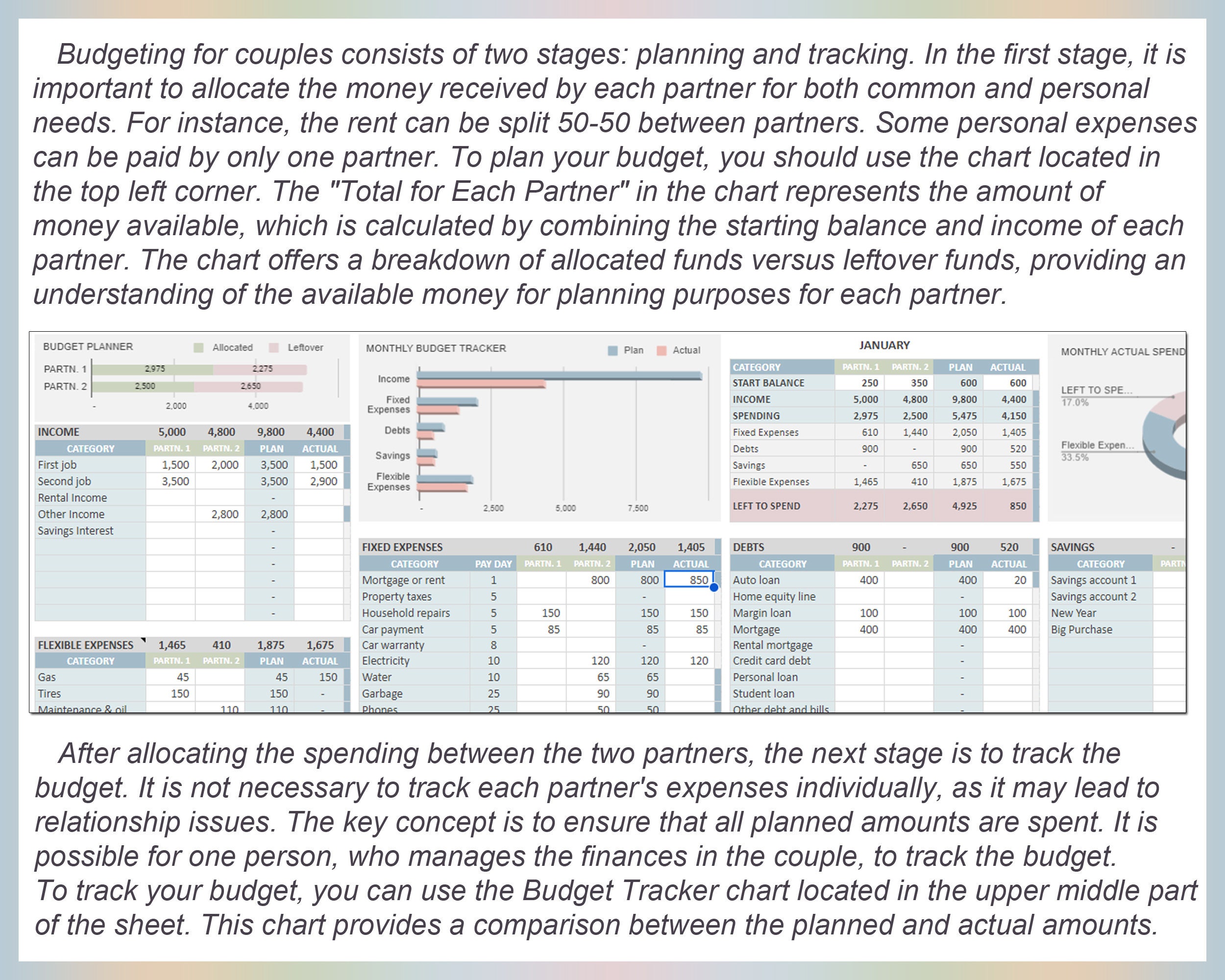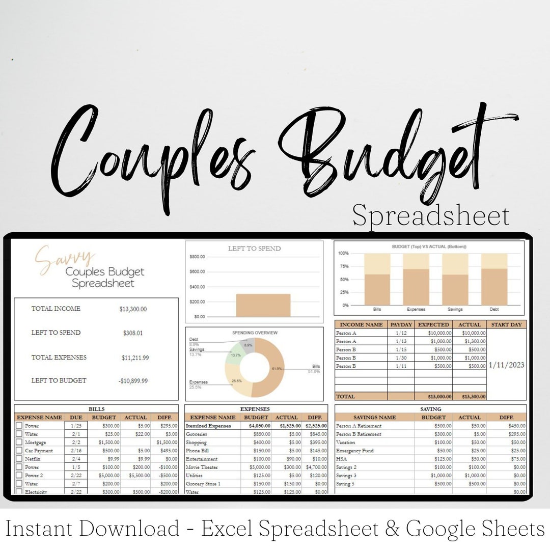 Financial Planner COUPLES BUDGET Excel Template Expense Tracker