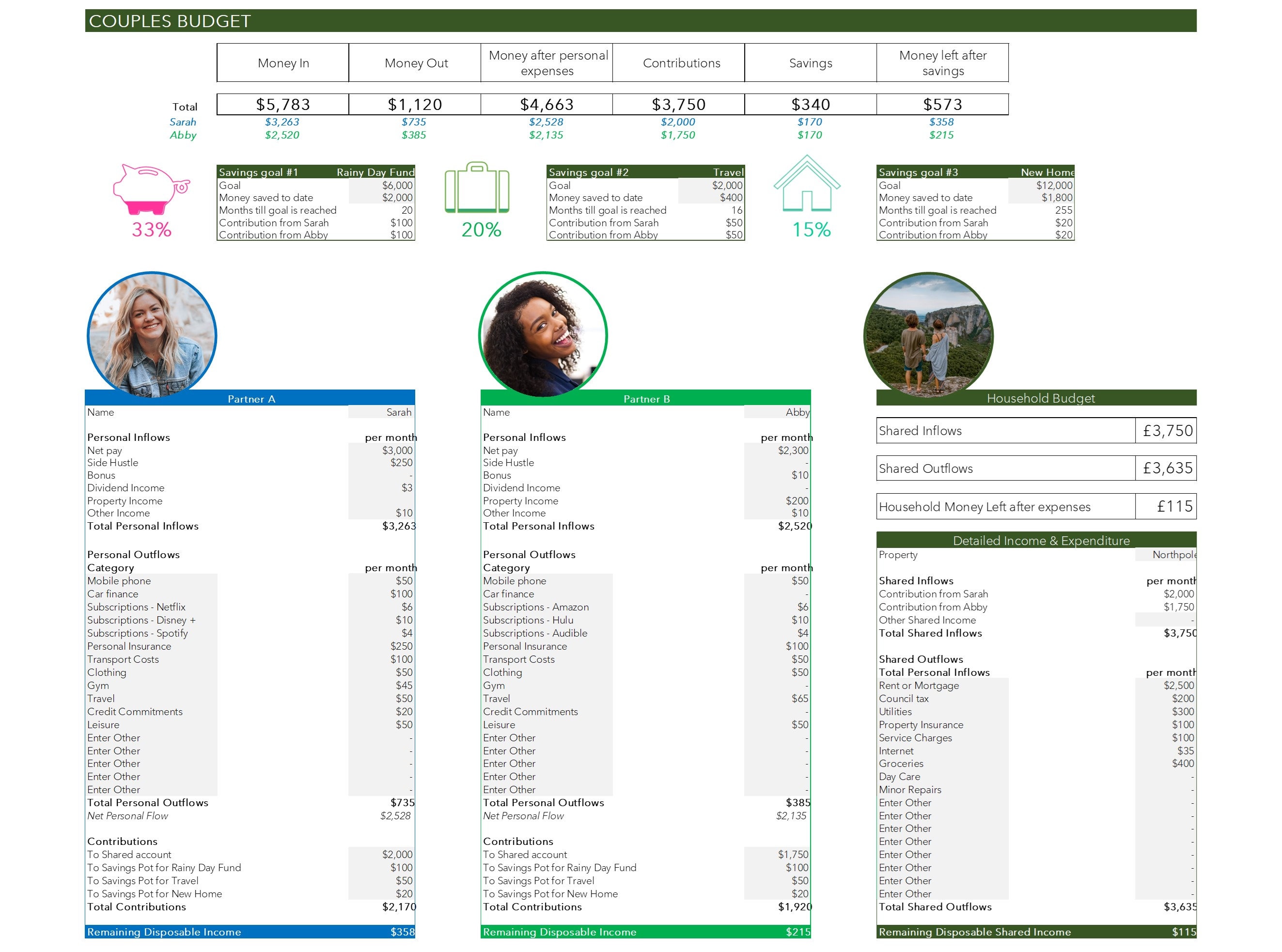 Couples Budget Spreadsheet Template: Monthly Shared Personal Expense