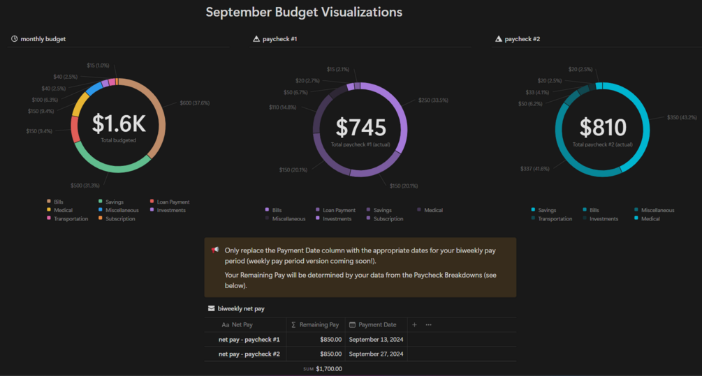 Monthly Expenses Budgeting Notion Template Biweekly Pay