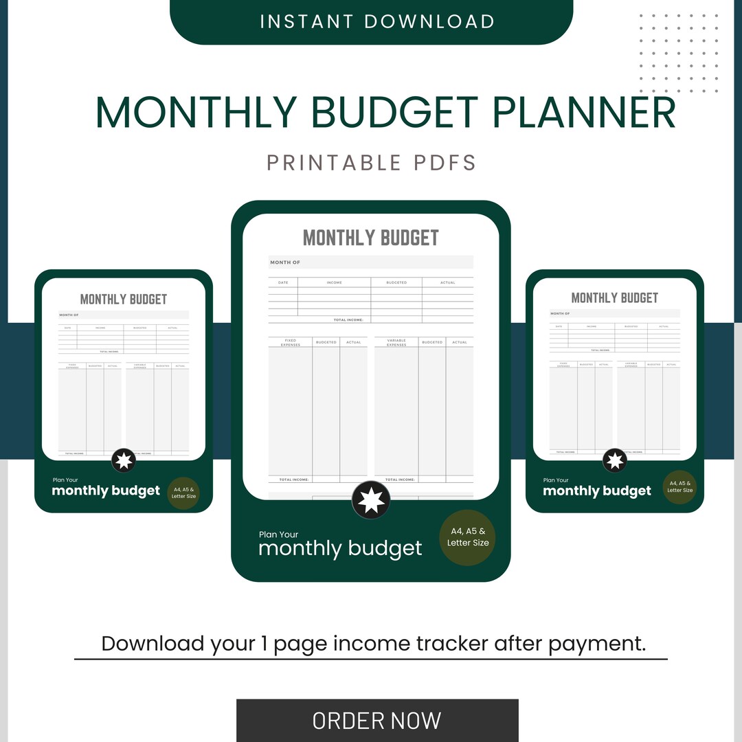 Free Monthly Budget Template Instant Download Budget planner
