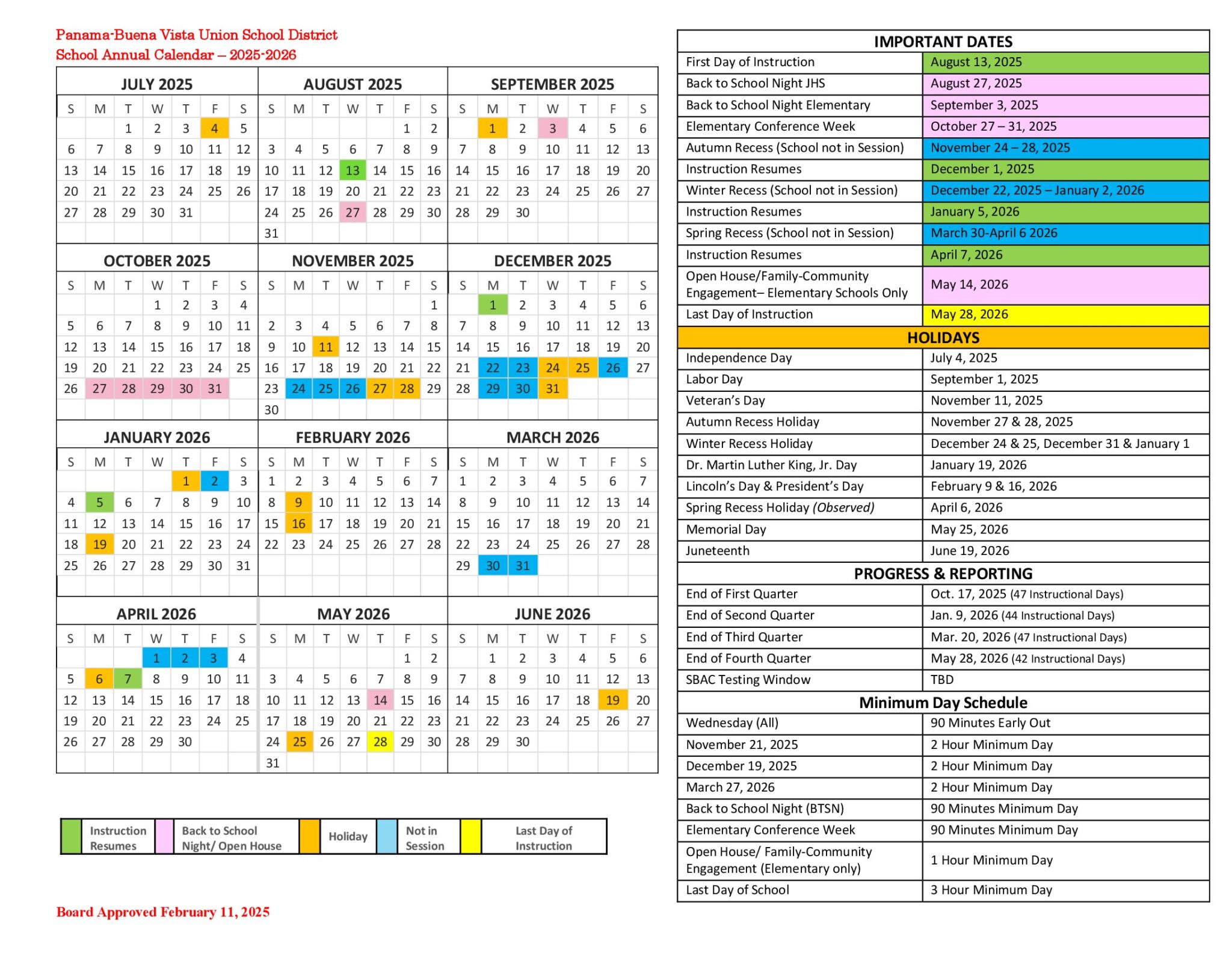 Panama Buena Vista Union School District Calendar 25 26 EduCounty