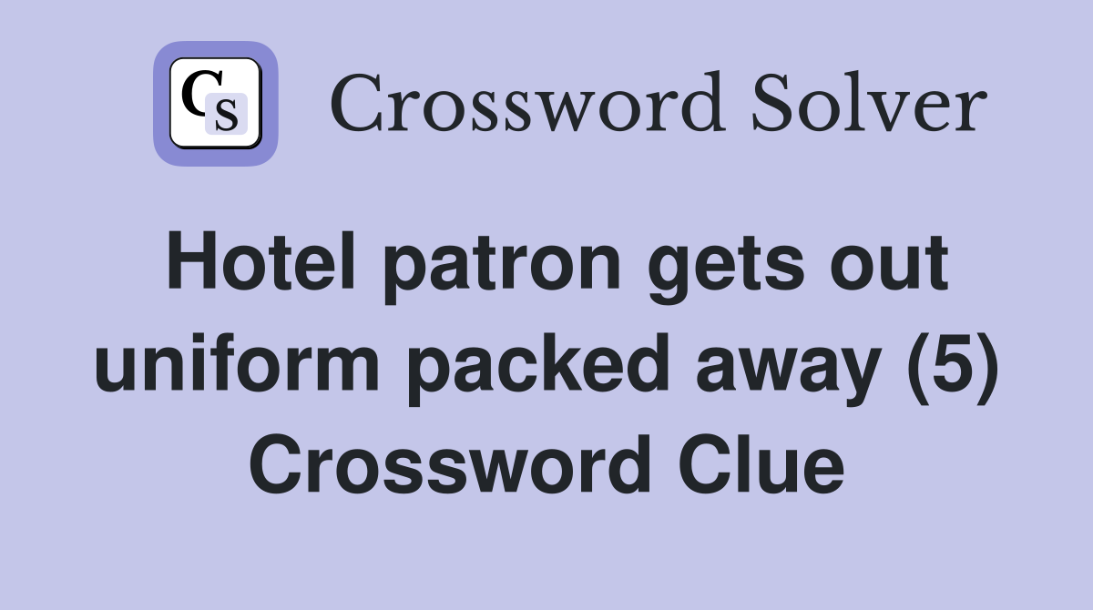 Hotel patron gets out uniform packed away (5) Crossword Clue Answers