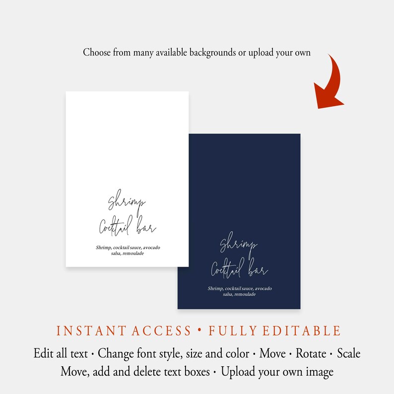 Editable Minimalist Buffet Card Template Wedding Buffet Label Modern
