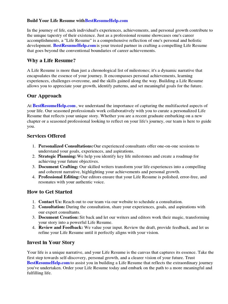 Build Your Life Resume