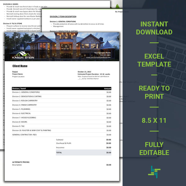Builder Construction Proposal Templates