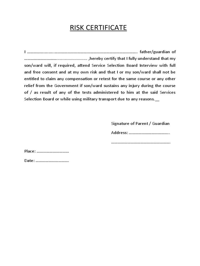 Risk Certificate PDF