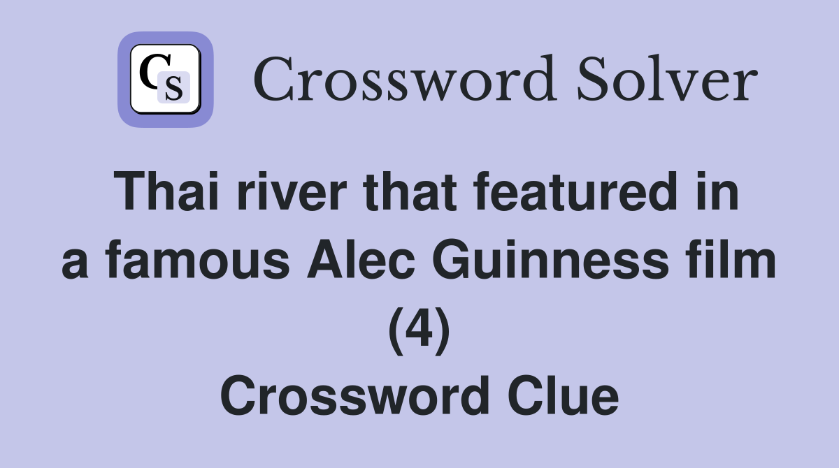 Thai river that featured in a famous Alec Guinness film (4) Crossword