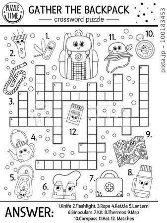 Vector black and white camping crossword puzzle のイラスト素材 100183453