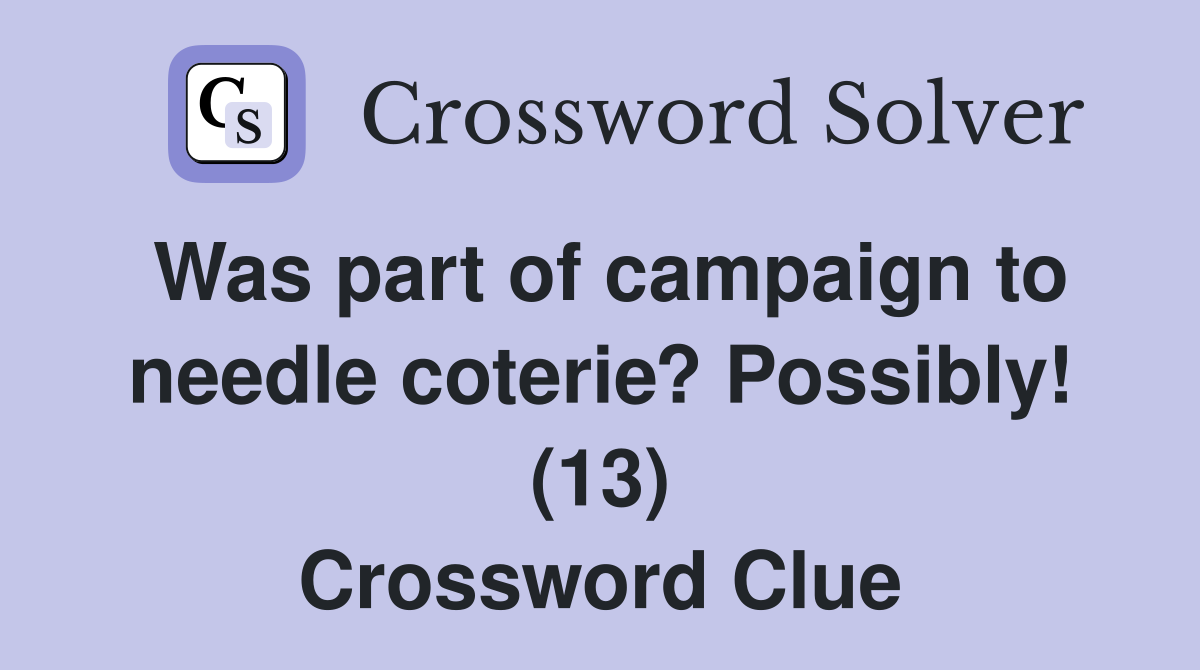 Was part of campaign to needle coterie? Possibly (13) Crossword Clue