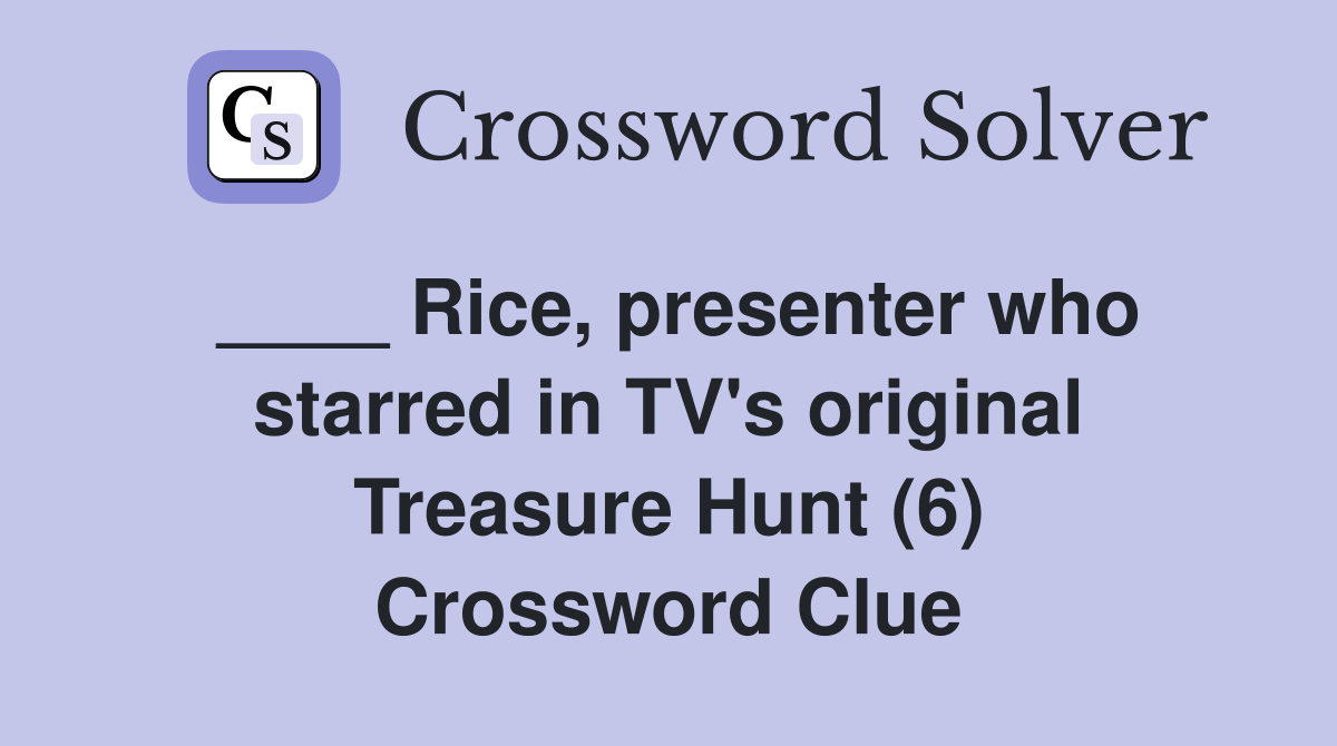 Rice presenter who starred in TV s original Treasure Hunt (6