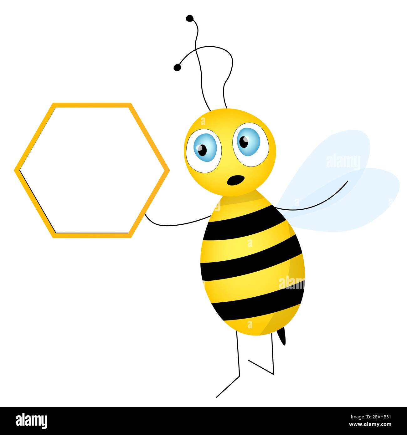 Cartoon cute bee mascot Merry bee with an empty table Small wasp