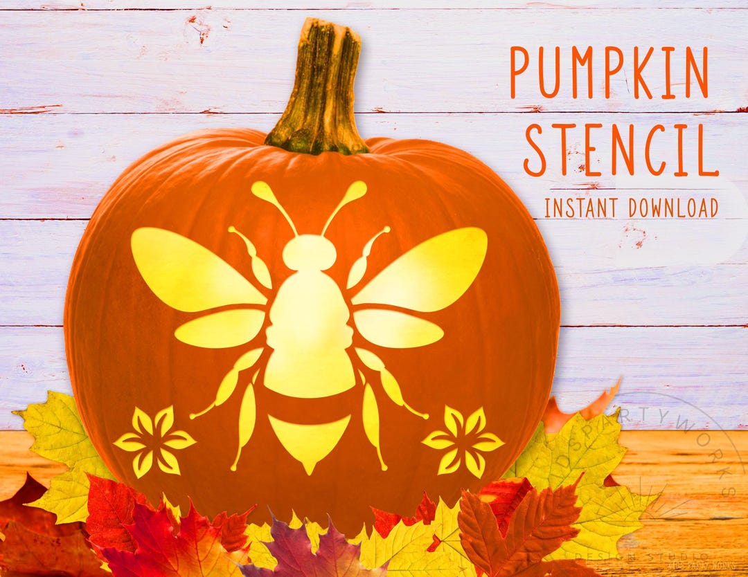 Bee Pumpkin Stencil Bumble Bee Pumpkin Carving Stencil Halloween