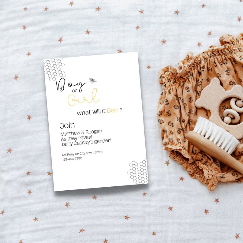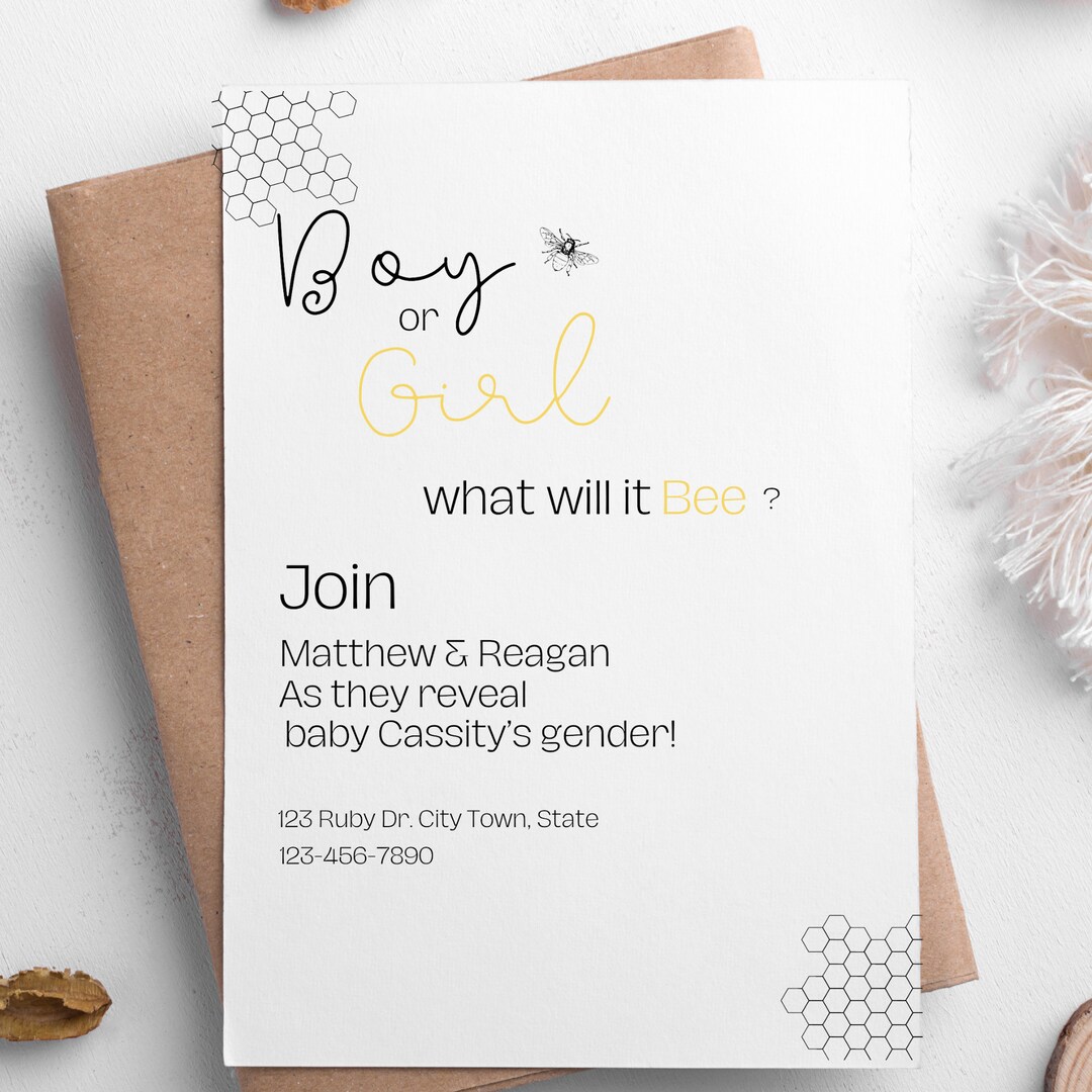 Bumble Bee Gender Reveal Invitation: Printable Canva Template Etsy