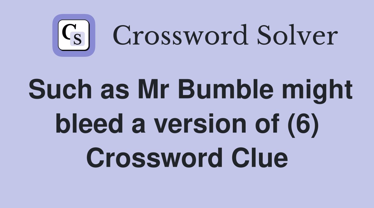 Such as Mr Bumble might bleed a version of (6) Crossword Clue Answers