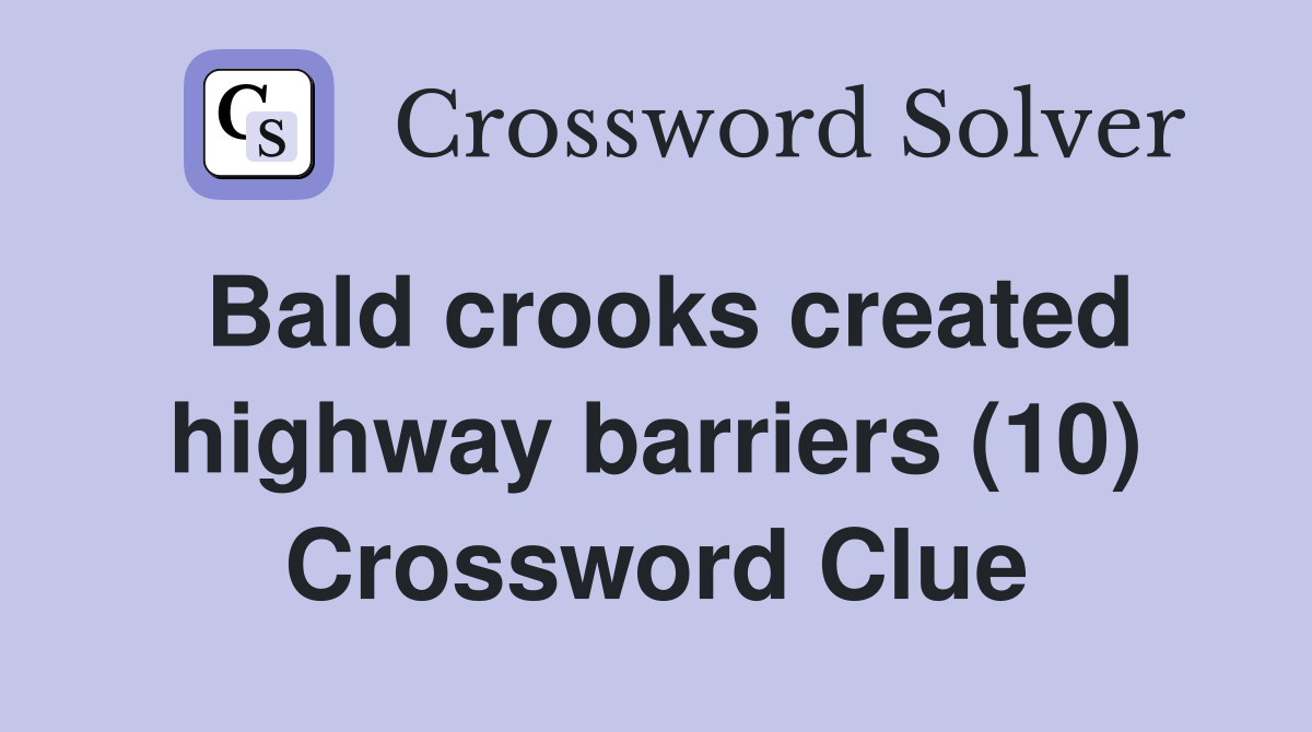 Bald crooks created highway barriers (10) Crossword Clue Answers