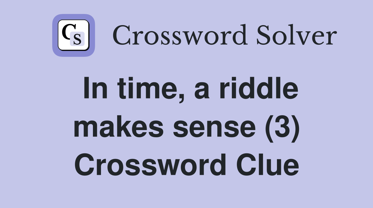In time a riddle makes sense (3) Crossword Clue Answers Crossword