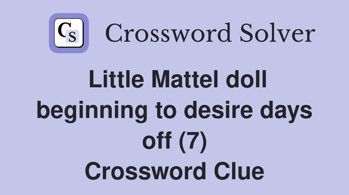 Little Mattel doll beginning to desire days off (7) Crossword Clue
