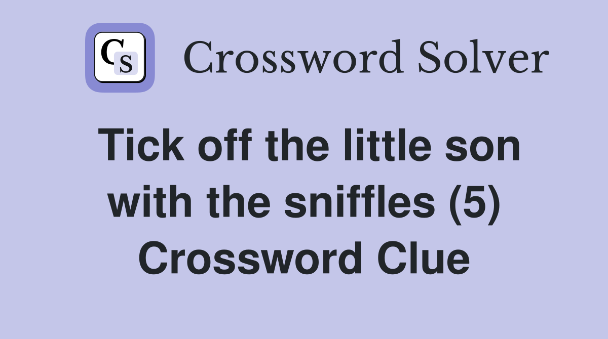 Tick off the little son with the sniffles (5) Crossword Clue Answers