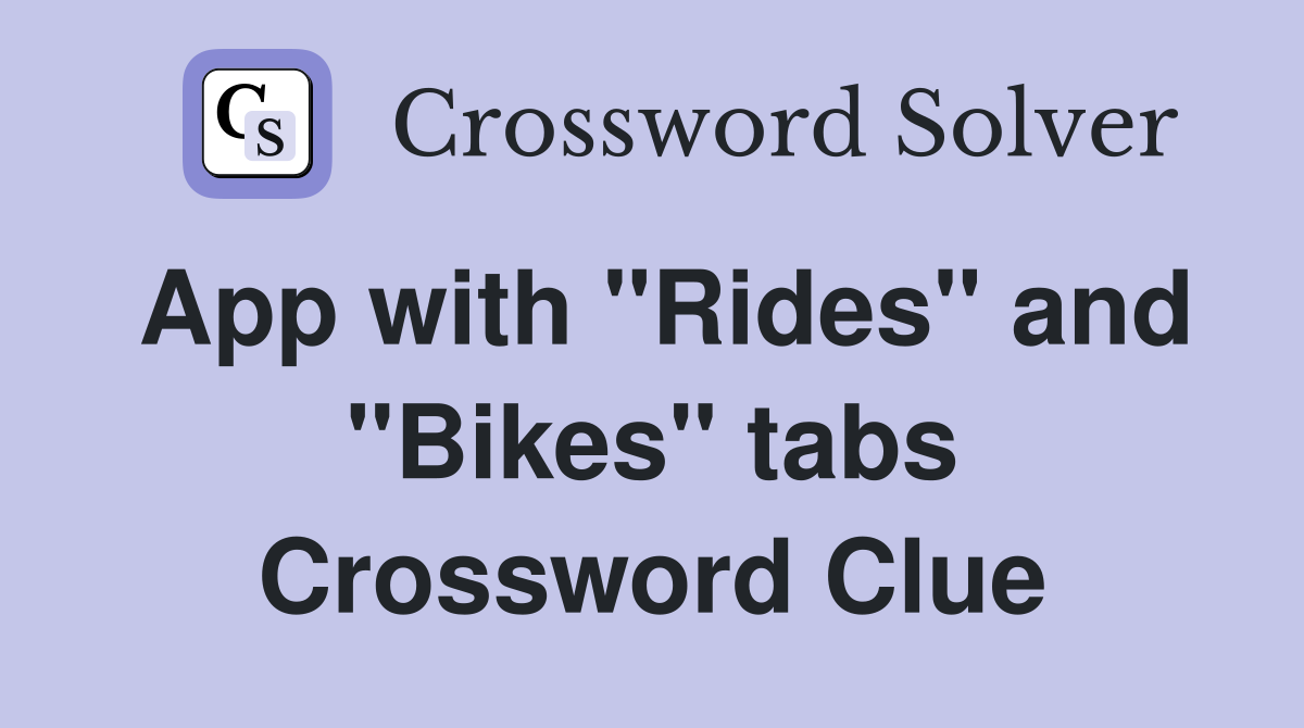 App with quot Rides quot and quot Bikes quot tabs Crossword Clue Answers Crossword