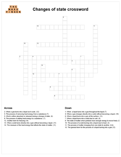 KS3 Chemistry States of Matter crossword bundle Teaching Resources