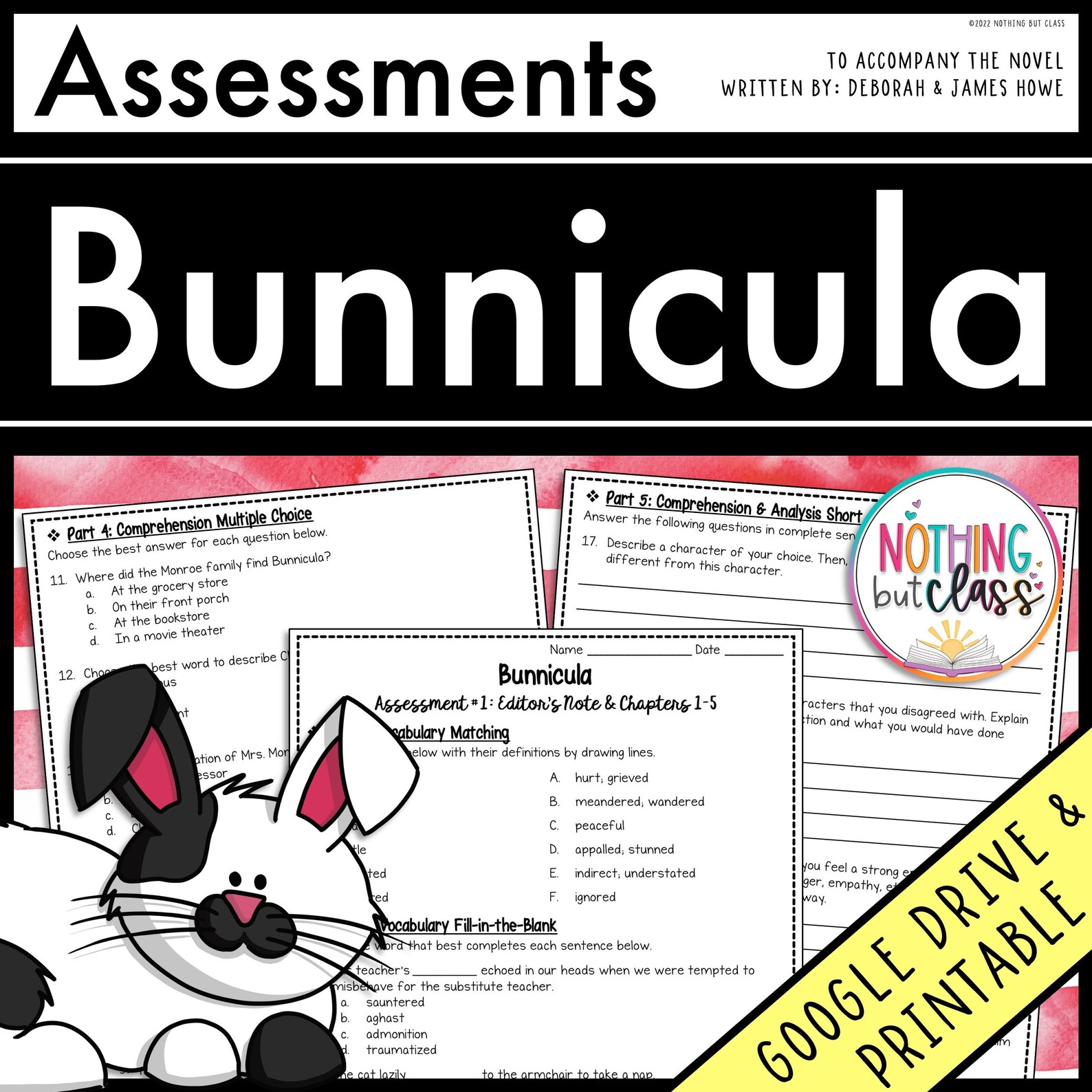 Bunnicula Tests Quizzes Assessments Printables for Homeschool or