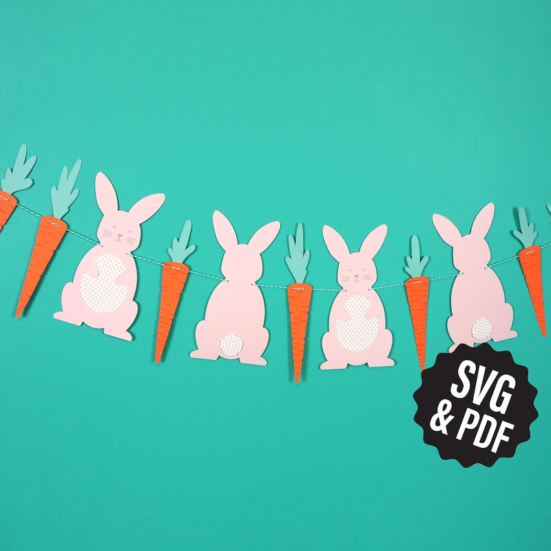 DIY Bunny Garland Template for Cutting Machines or Hand Cutting SVG