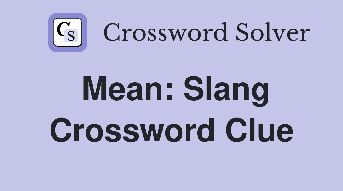 Mean: Slang Crossword Clue Answers Crossword Solver