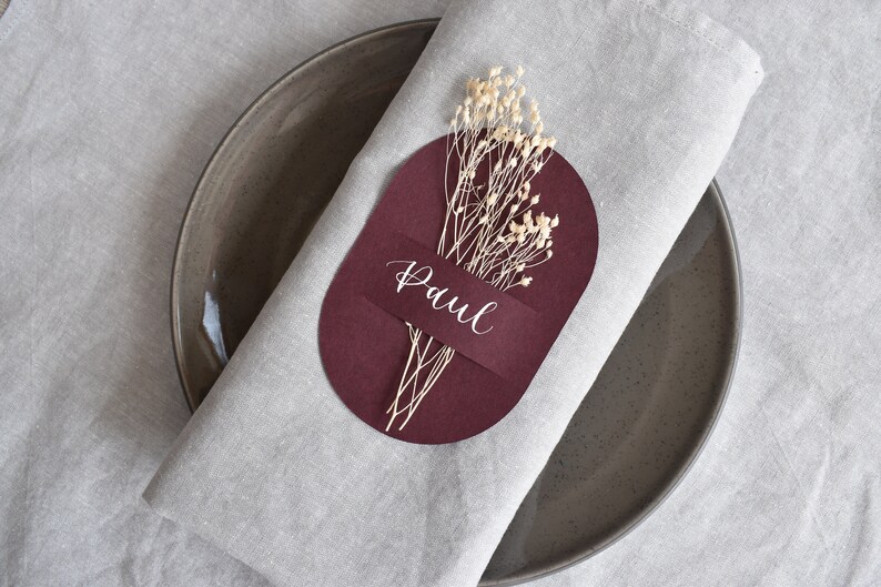 Handwritten Burgundy Claret Wine Placecards Modern Calligraphy Arc